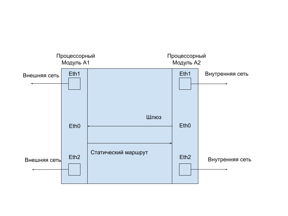 Важно подсети на интерфейсах внешней процессорной платы и внутренней процессорной платы не должны пересекаться