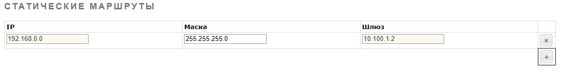| Статический маршрут | 172.168.0.0 А так же адреса внешних серверов опрашивающих внутреннюю плату  | 255.255.255.0 | 10.100.1.2 | |