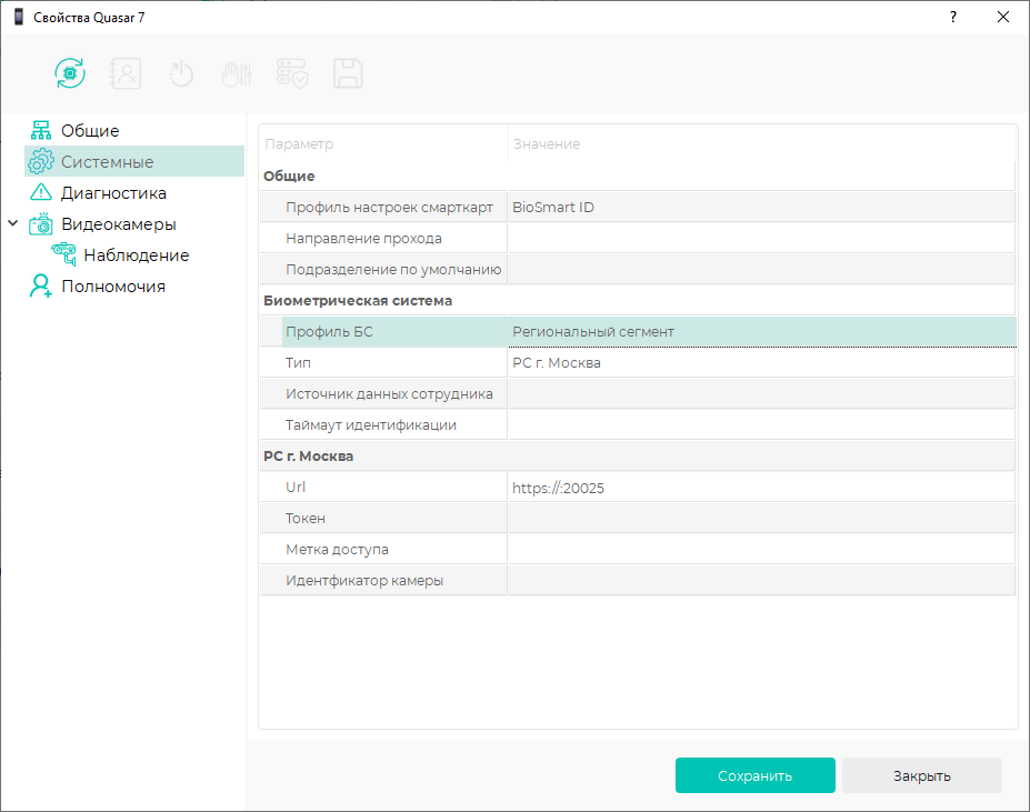 Остальные параметры заполните в соответствии с таблицей ниже.Параметр Описание Биометрическая система Источник данных сотрудника Доступны следующие значения: